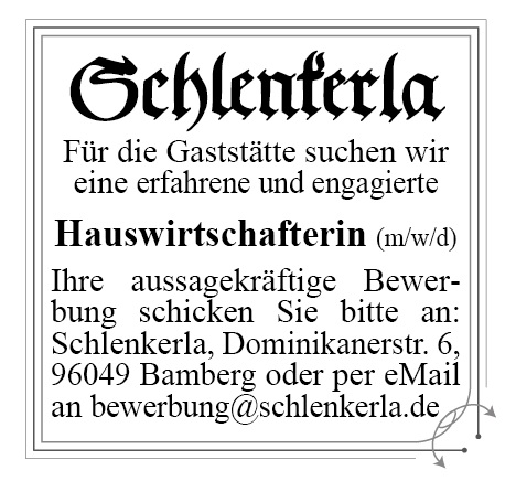 Dominikanerstraße 6 - 96049 Bamberg - Deutschland - eMail schreiben oder Tisch reservieren - Tischreservierung für den heutigen Tag bitte per Telefon: 0951/56050, sonst gerne per eMail - Impressum